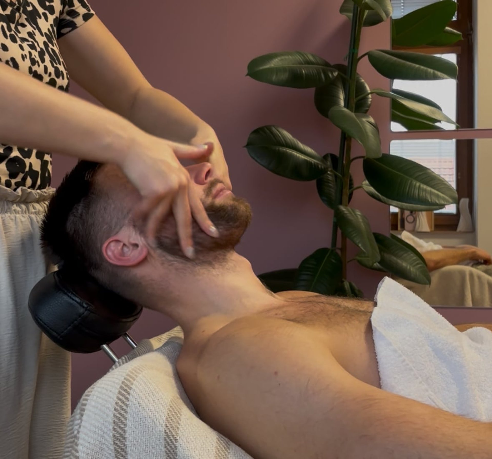 65minut - detailnejšie uvoľňovanie mimických svalov, skalpu- hlavovej pokožky a krku